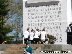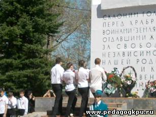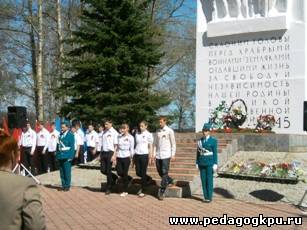колледжа возлагают гирлянду к обелиску павшим воинам в годы Великой